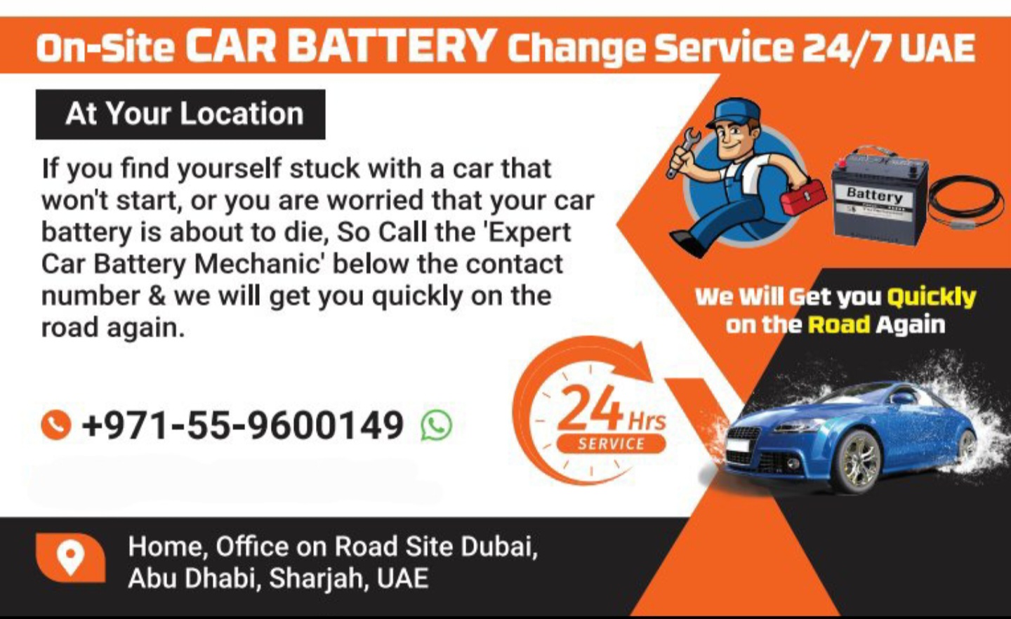 Onsite Car Battery/Car Repair Mechanic Mobile Service 24/7 Dubai@UAE 🇦🇪 +971-55-9600149